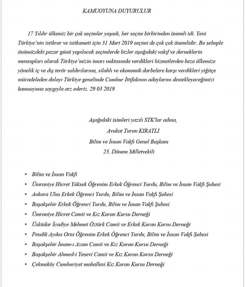 31 Mart Yerel Seçimi Kamuoyu Açıklaması